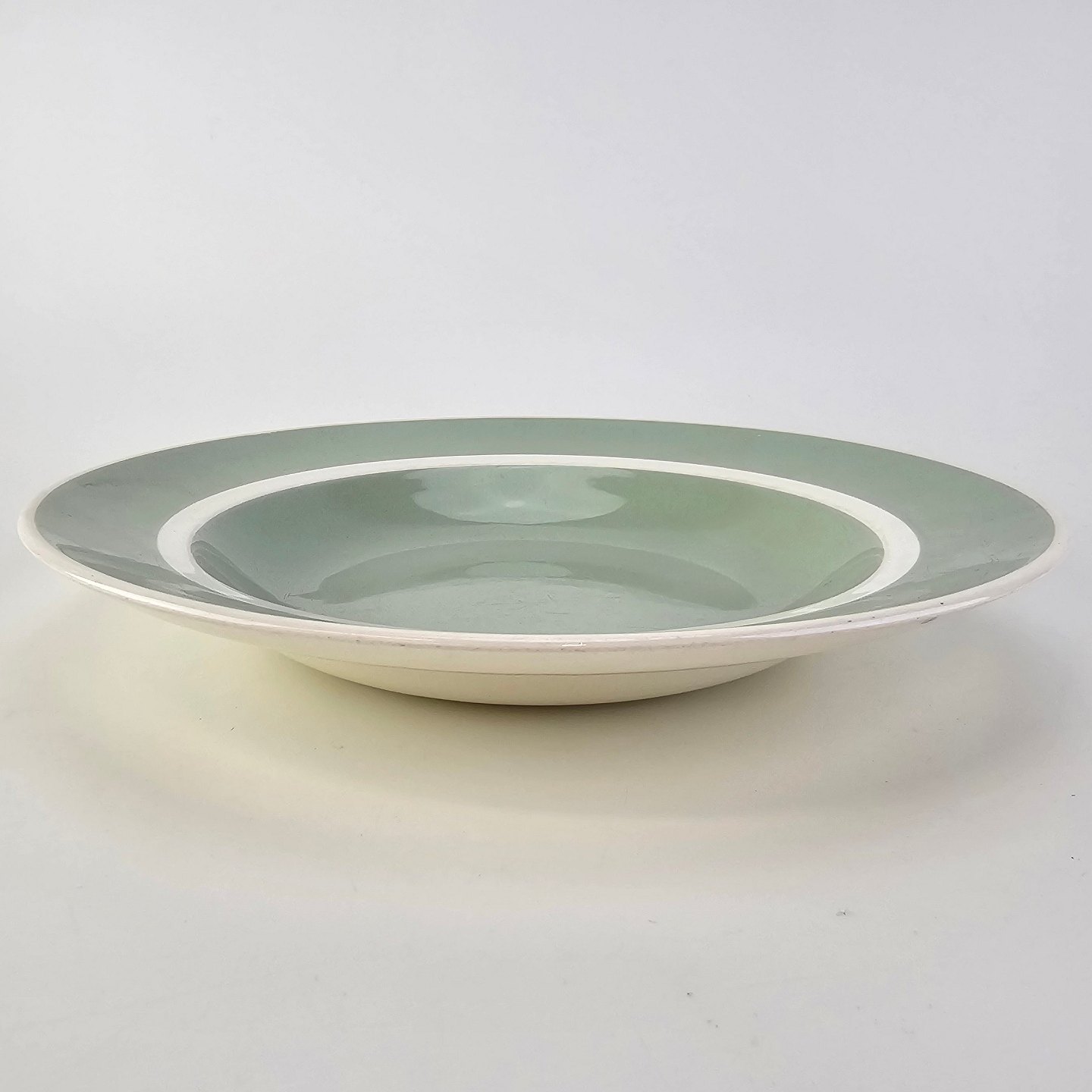 Fajancestel i pastelgrøn farve med hvid stribe