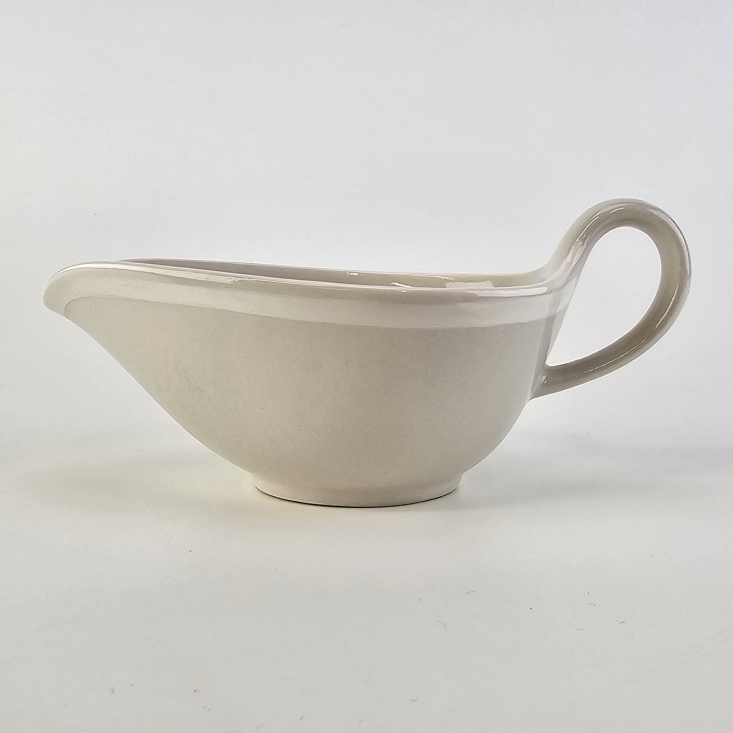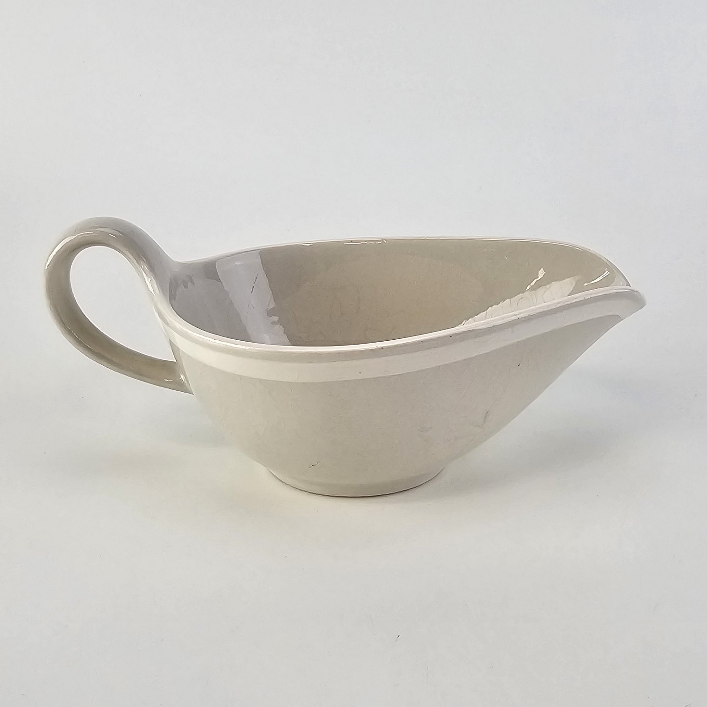 Dorrit er stel lavet på stelform D i cremefarvet fajance dekoreret med bred hvid stribe