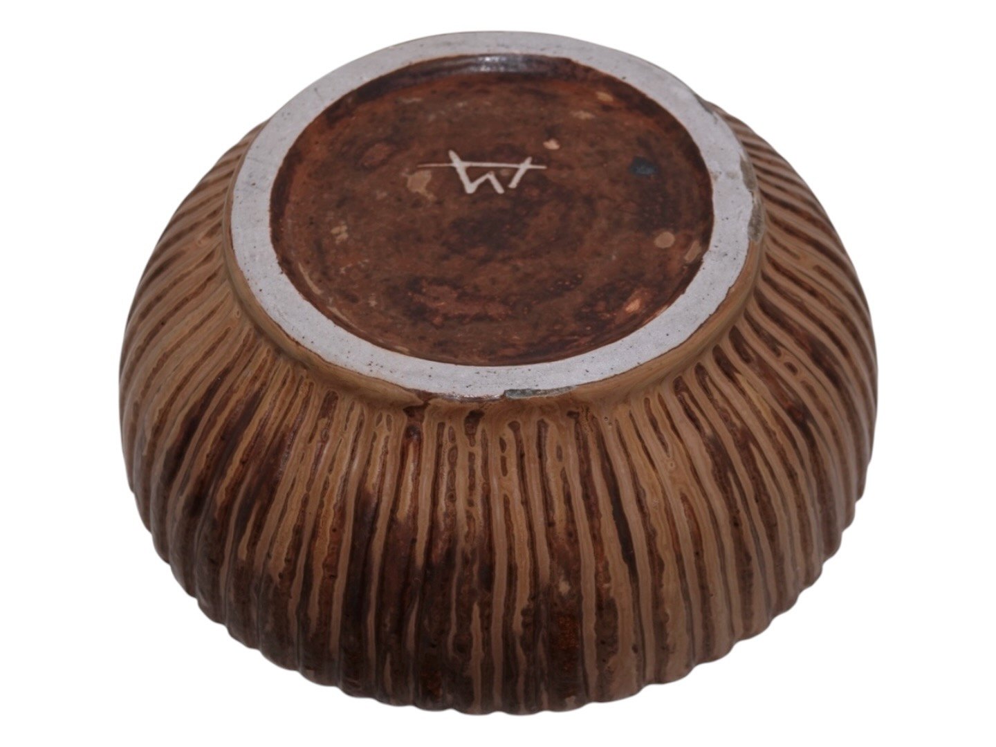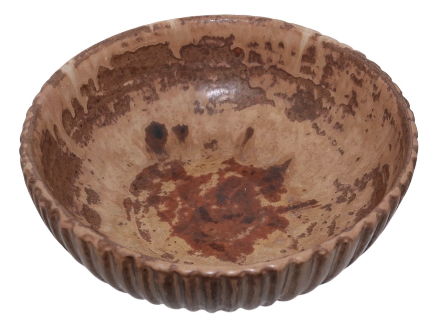 Bode Willumsen keramik, større rund skål i Salto stil med riller.