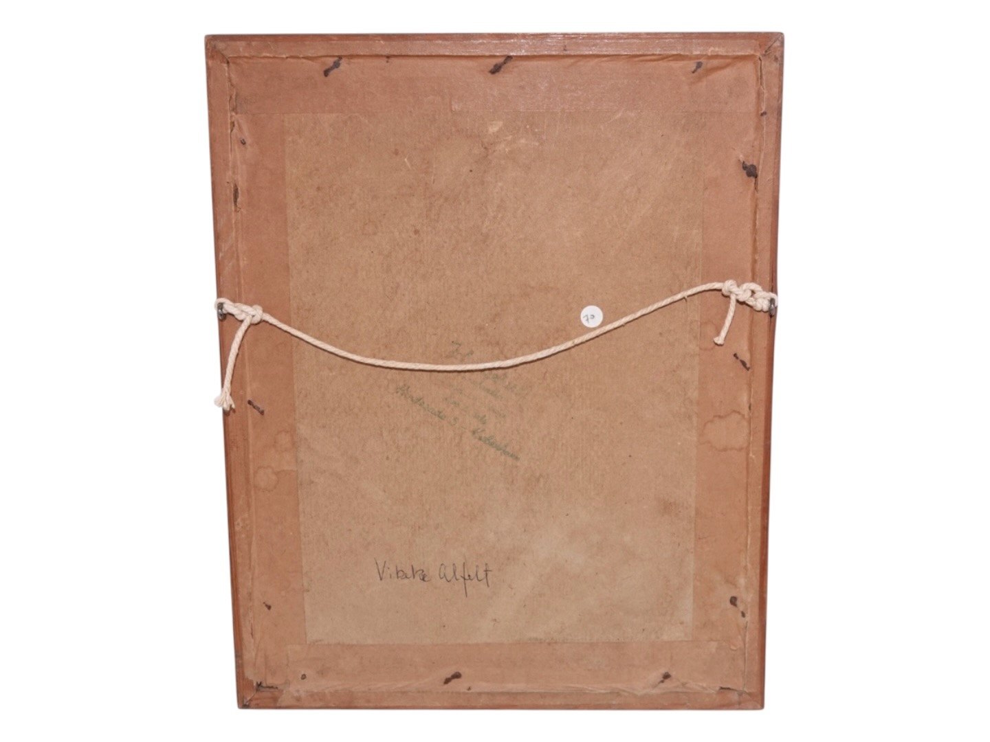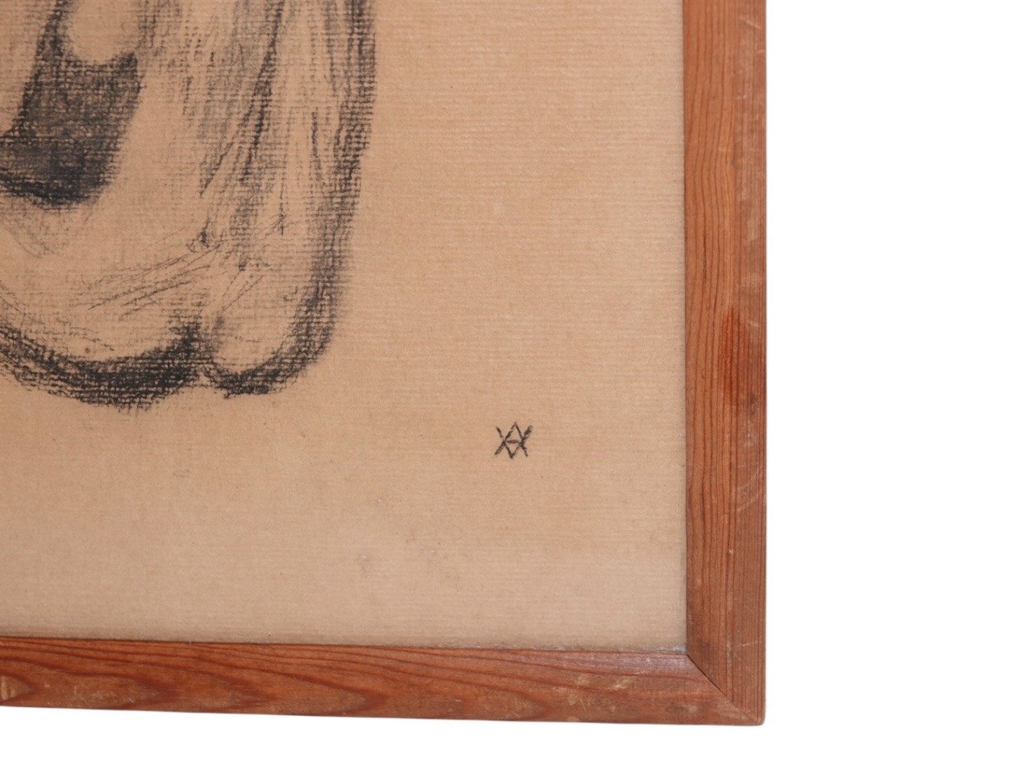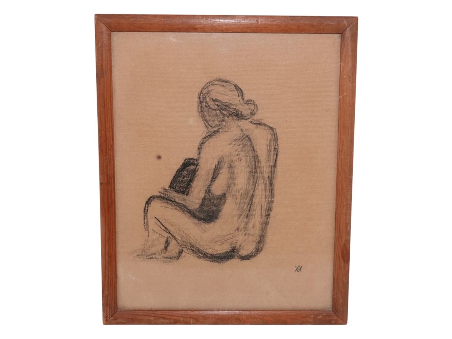 Vibeke Alfelt (1934-1999), early drawing of a nude lady in a wooden frame and behind glass.