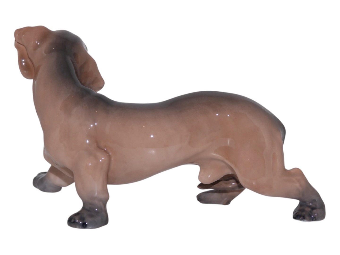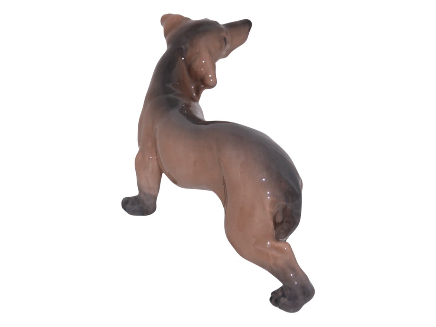 Sjælden Royal Copenhagen hundefigur, gravhund.Af fabriksmærket ses det, at denne er produceret før 1928.