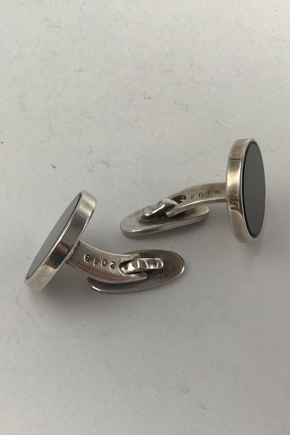 Georg Jensen Sterling Sølv Manchetknapper No. 201B (Onyx)Måler Diam 1.9 cm (0.75 inch) Samlet Vægt 17 gr (0.6 oz)