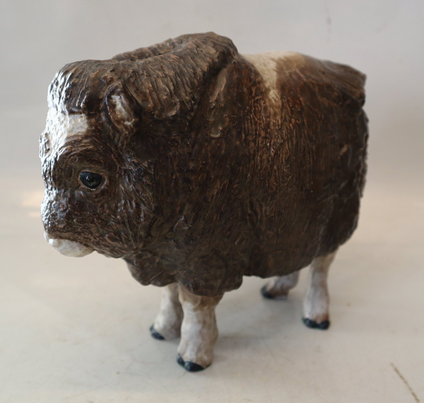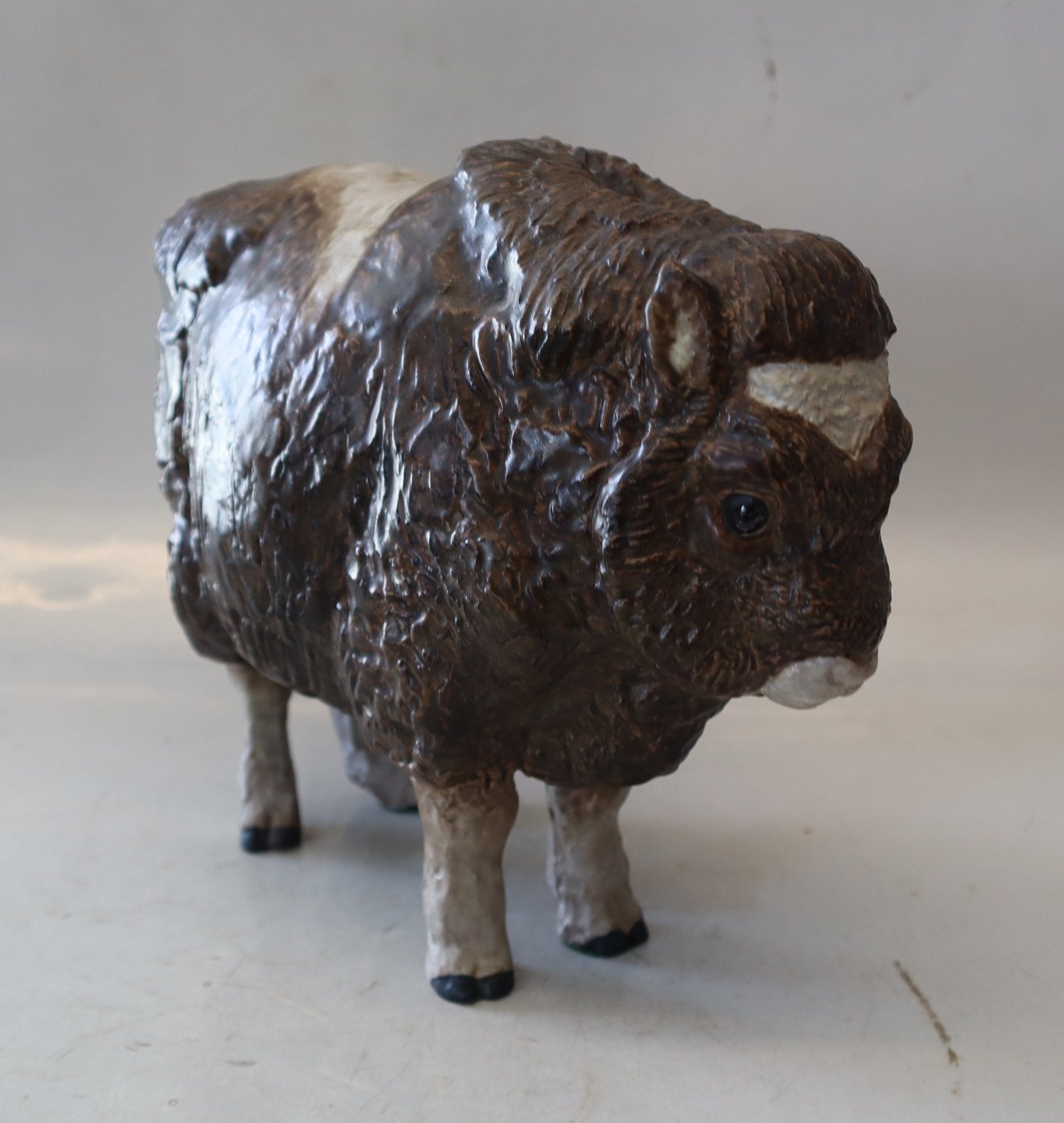 Royal Copenhagen Aluminia fajance 3149 Moskus Okse Jeanne Grut ca. 22 x 26 cm glaseret JGBison, Muskus Moskusokse
