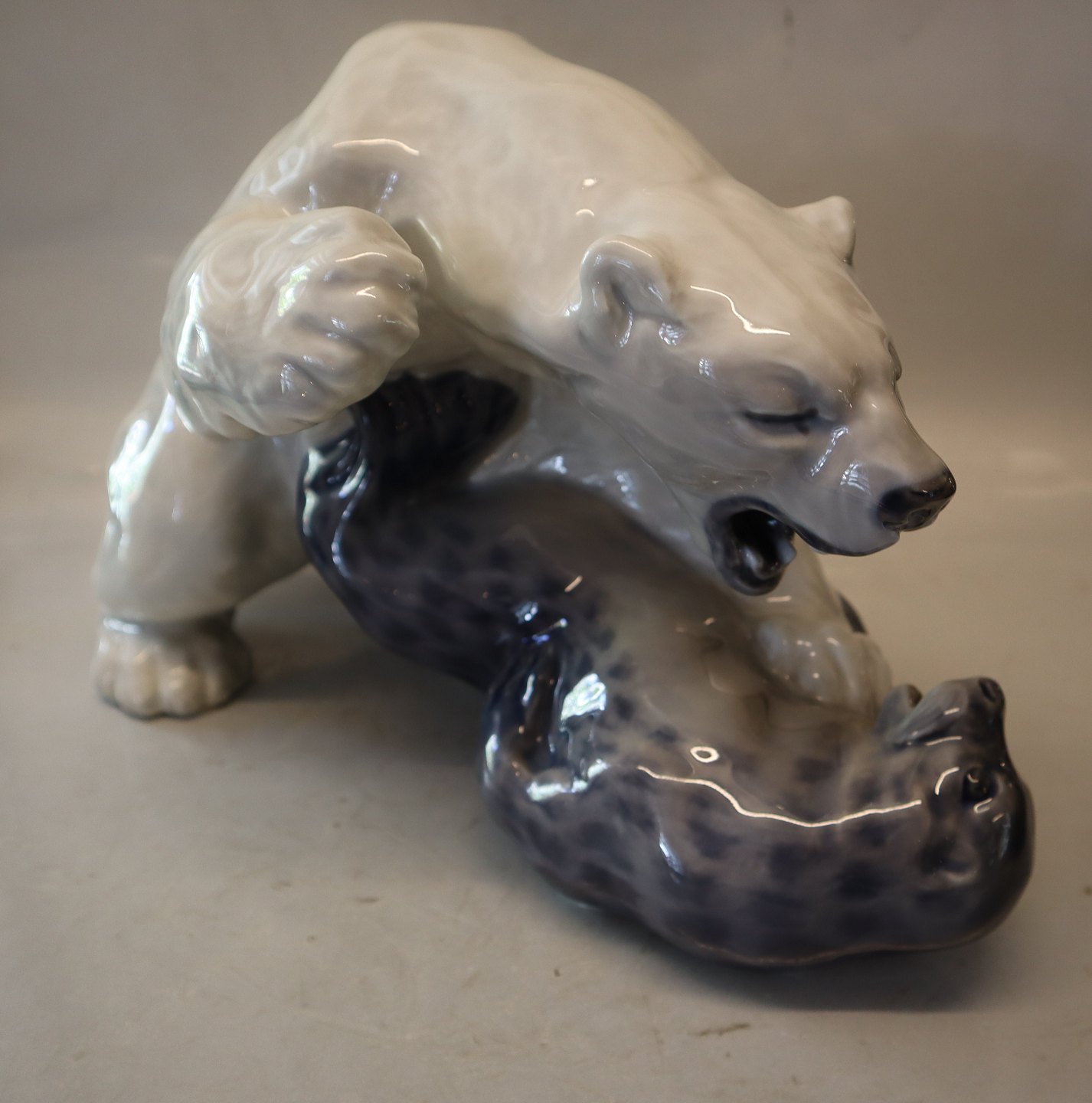 1108 Isbjørn med sæl KK ca 23 x 37 cm 1909 Kongelig Dansk Porceclæn