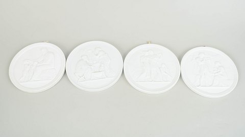 Royal Copenhagen, sæt af fire biscuit vægrelieffer efter Thorvaldsen.