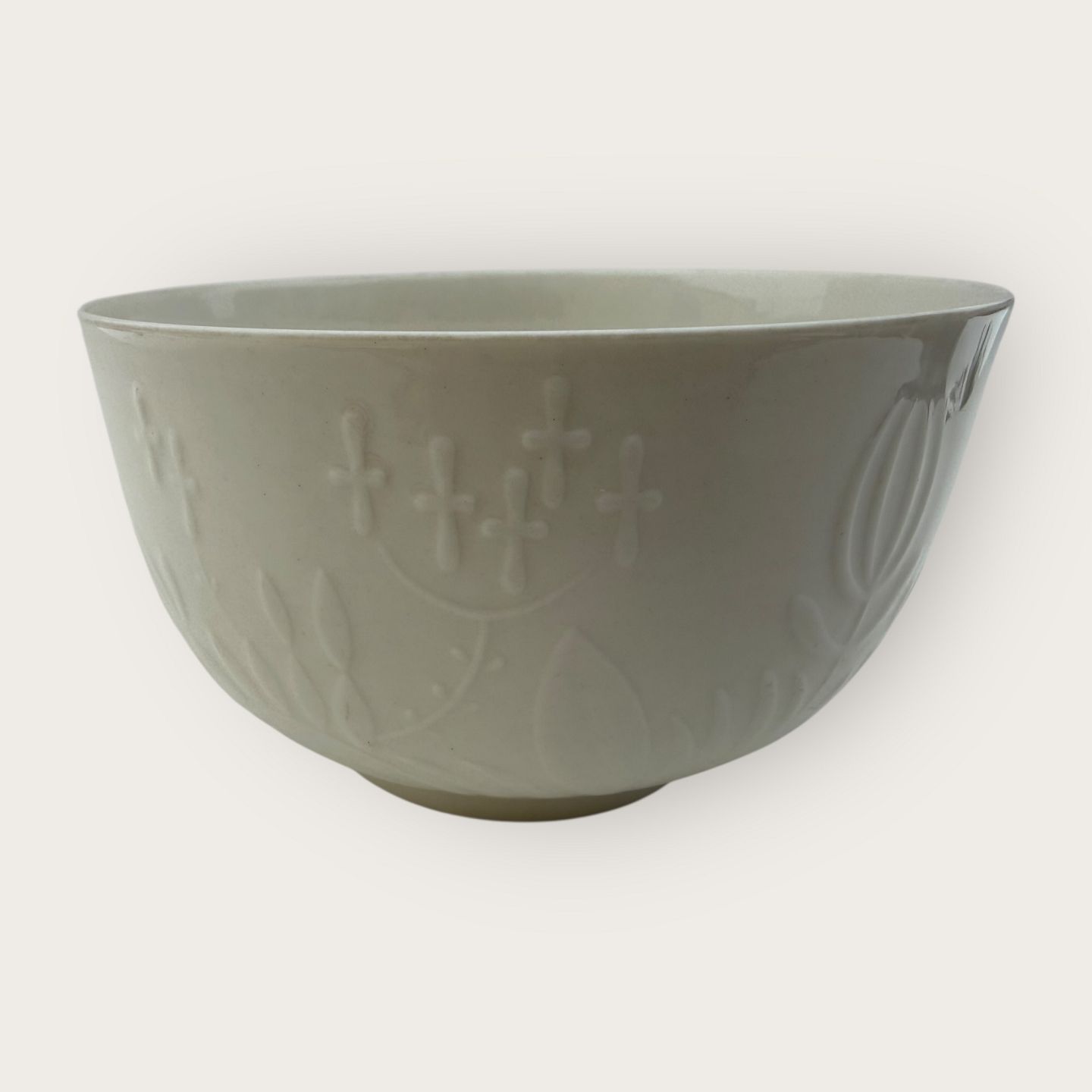 Royal Copenhagen, Nr. 4129, Schale aus Blanc de Chine mit Reliefdekor, u. a. mit Blumen und Blättern, Durchmesser 15 cm, Höhe 9 cm *Guter Zustand*
