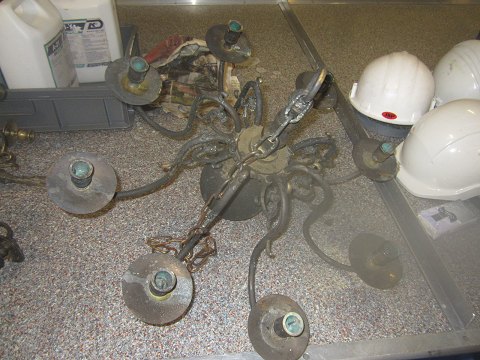Dieser Leuchter wurde nach einem Brandschaden restauriert.