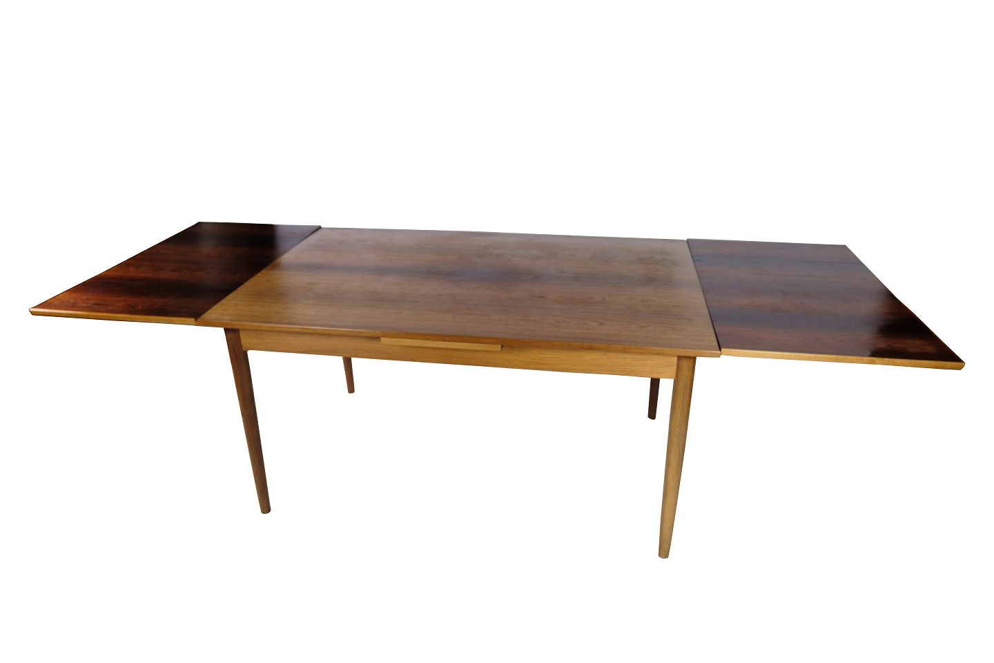 Esstisch von einem dänischen Tischler aus Palisander mit holländischen Auszügen aus den 1960er Jahren. Die Tischplatte kann abgeschliffen und in der gleichen Farbe wie die zusätzlichen Platten gemacht werden, die im Preis enthalten sind.