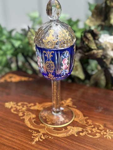 Böhmische Kristallkelche mit Deckel aus Überlaufglas, handgeschliffenem Bleikristall, Emaille und Gold, aus der Zeit des Rokoko. Höhe 18 cm