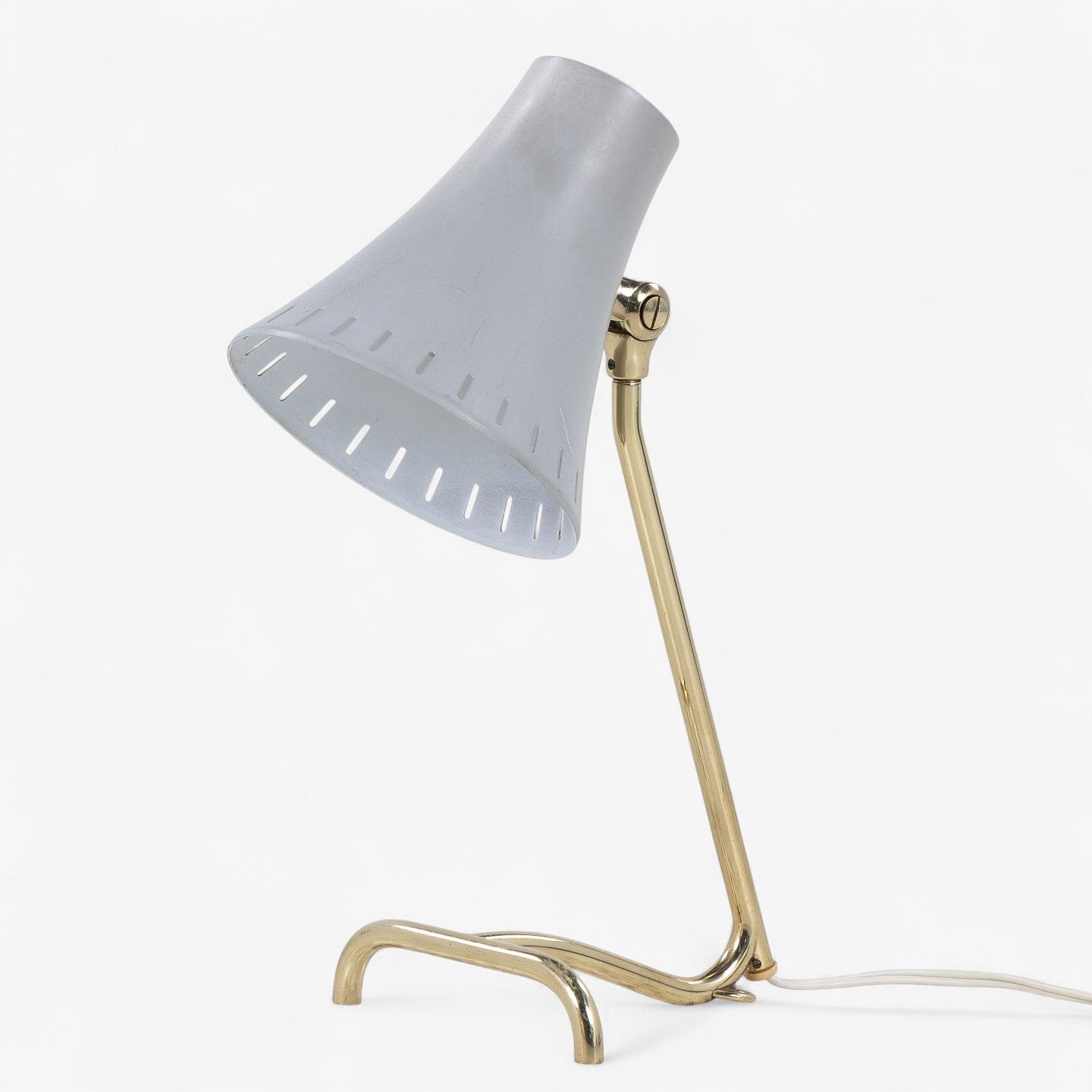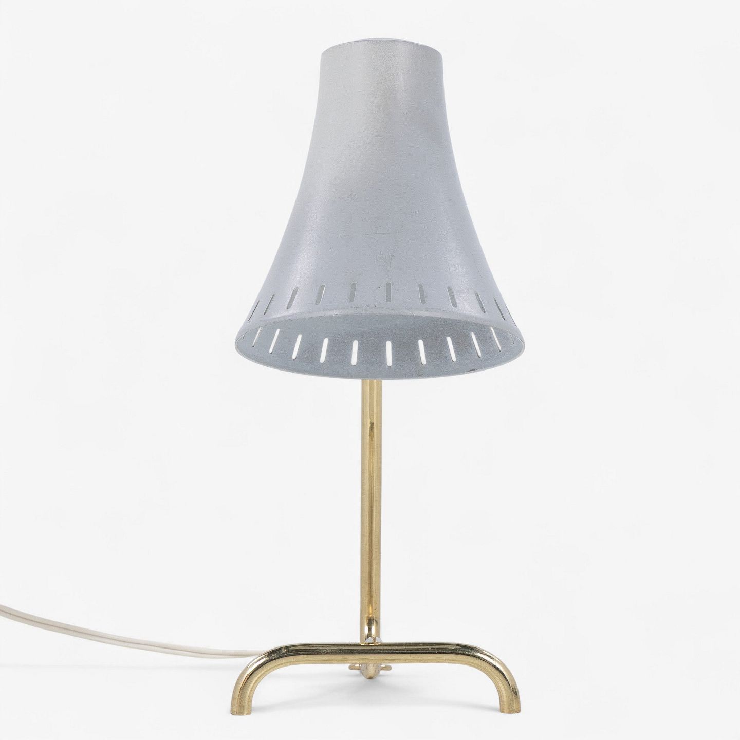 Model 8256 - Bordlampe med stel i messing og skærm i grålakeret metal. Fra 1950'erne.